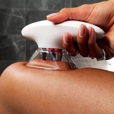 A compact body-care device using light and gentle vacuum massage to help release tension, support the feeling of better circulation, and promote smoother-looking, more toned skin at home.